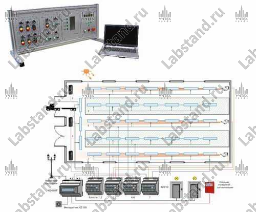 Назначение: Учебно-лабораторный стенд предназначен для проведения практических и лабораторных работ по изучению систем управления освещением в птичниках, поддержания оптимальных значений показателей микроклимата.