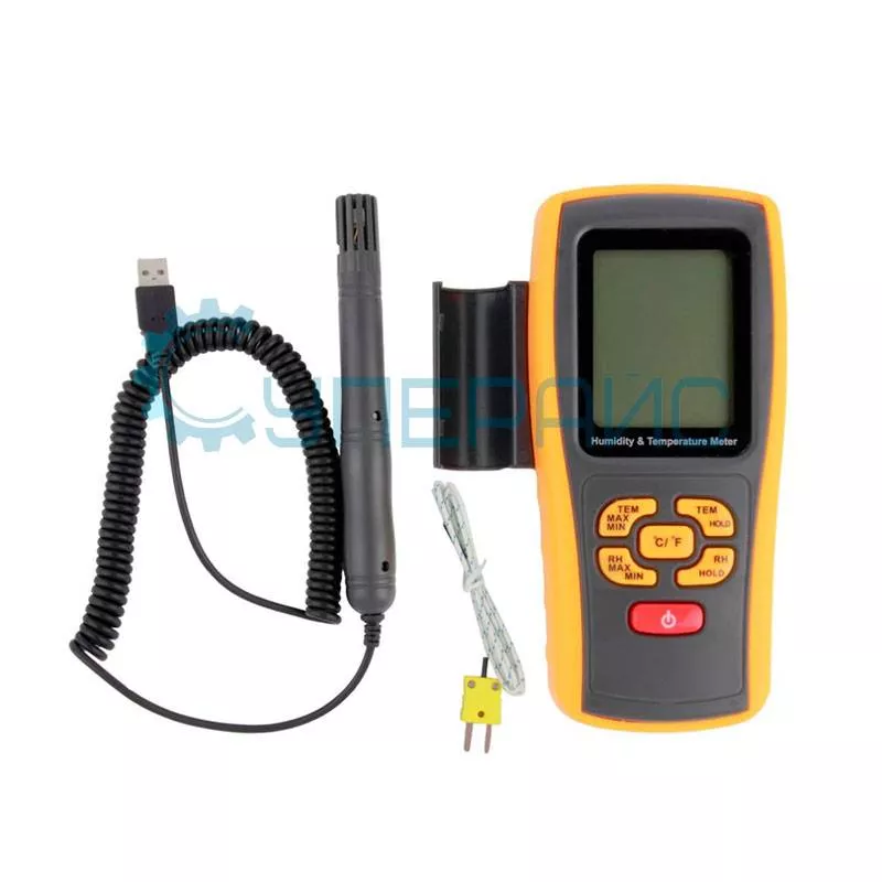 Цифровые термогигрометры представляют собой компактные и точные измерительные приборы, рассчитанные на проведение экспресс-измерений температуры и относительной влажности воздуха в закрытых помещениях или камерах в условиях неагрессивных газовых сред. Благодаря простоте и удобству использования термогигрометры сегодня вытеснили большинство аналогичных приборов и широко используются службами охраны труда на производстве, в учебных и медицинских учреждениях, административных и научных центрах, музеях, библиотеках и архивах, в сельском хозяйстве деревообработке, пищевой и текстильной промышленности; строительстве и др. Преимуществом данной модели термогигрометра является термопара типа (К) и выносной датчик измерения температуры и влажности.